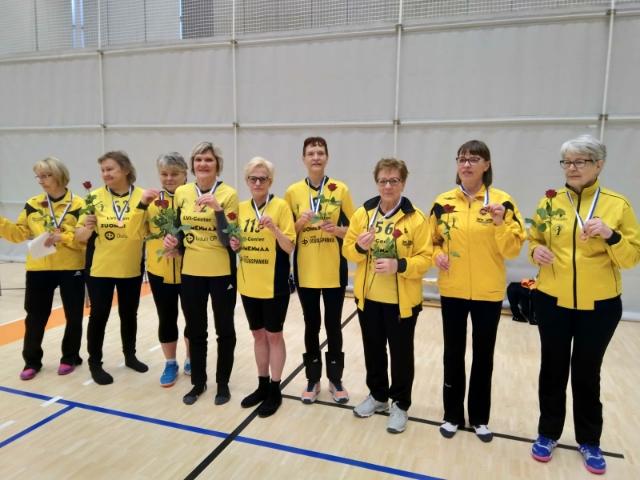 Vuoden 2025 SM-turnauksessa KULTAA voittanut N70-joukkue. Pelaajat vasemmalta lukien: Raija Myller, Helmi Talsta, Saimi Liikanen, Kaarina Talsta, Aira Halme, Eija Vola ja Leena Leppä.